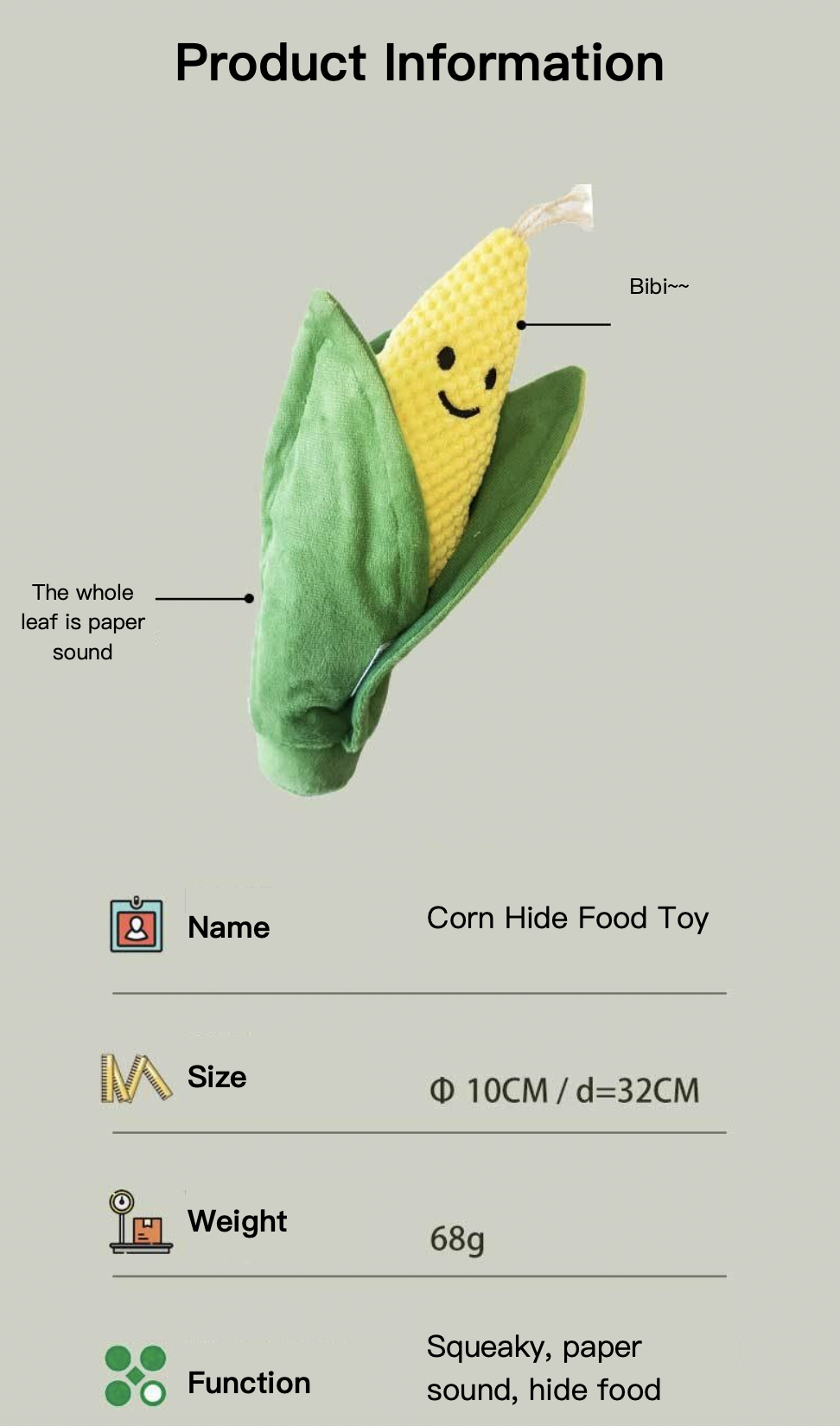 Corn Sniff Hide Food Dog Toy Squeaky Paper Sound Bite Resistant Pet Toy