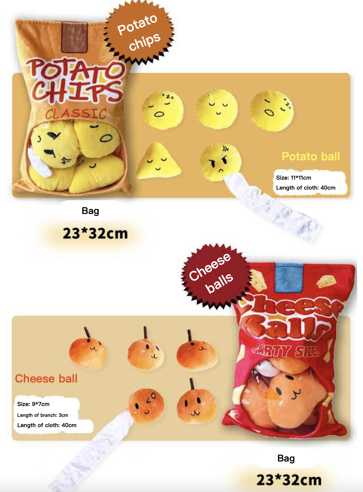 Potato Chips, Cheese Balls, Hamburger Set, Bone Set