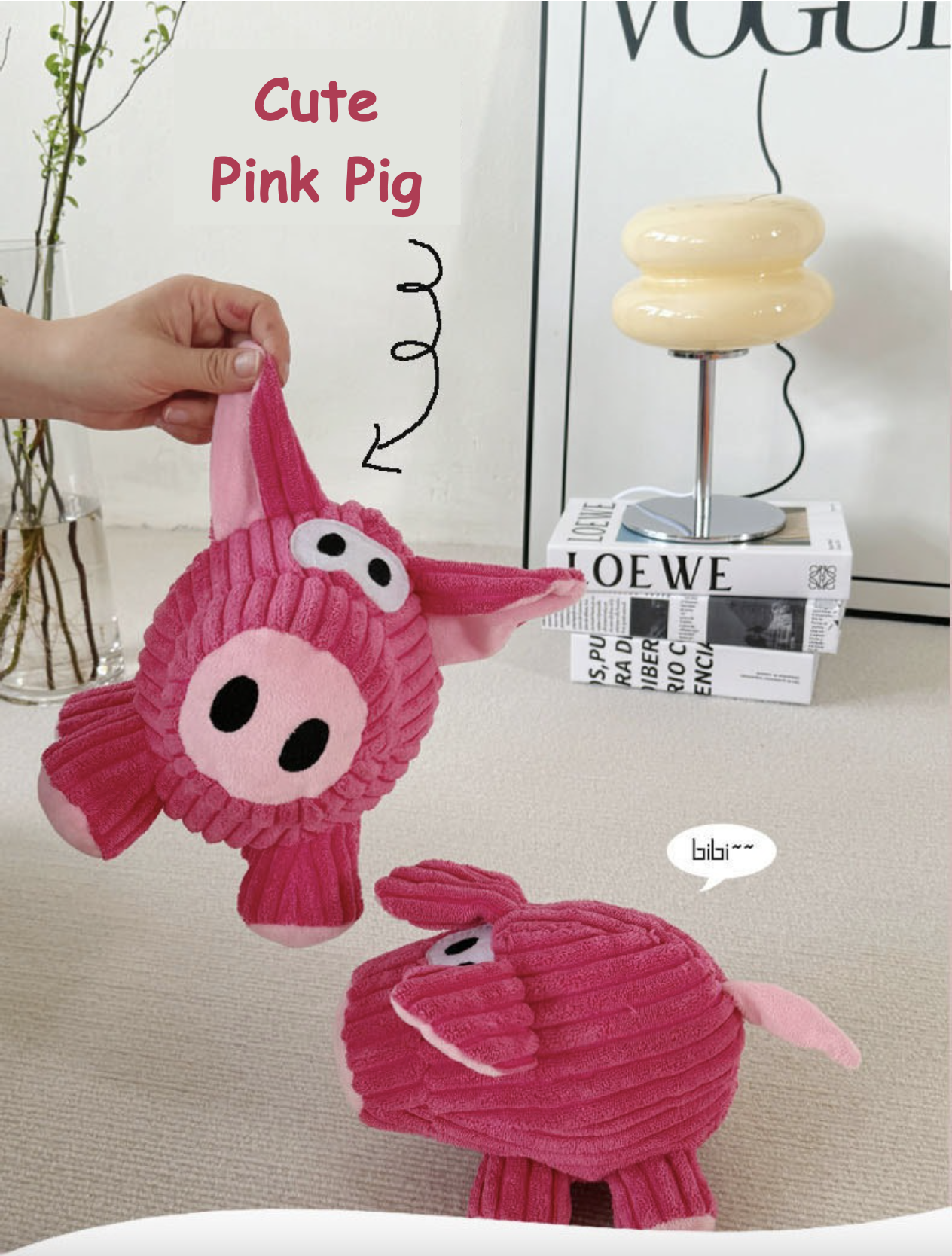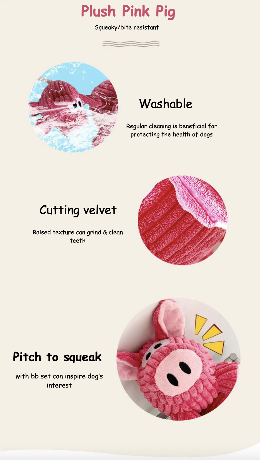 Plush Squeaky Dog Toy Cute Pink Pig Bite Resistant Pet Toy Teeth Grinding & Cleaning